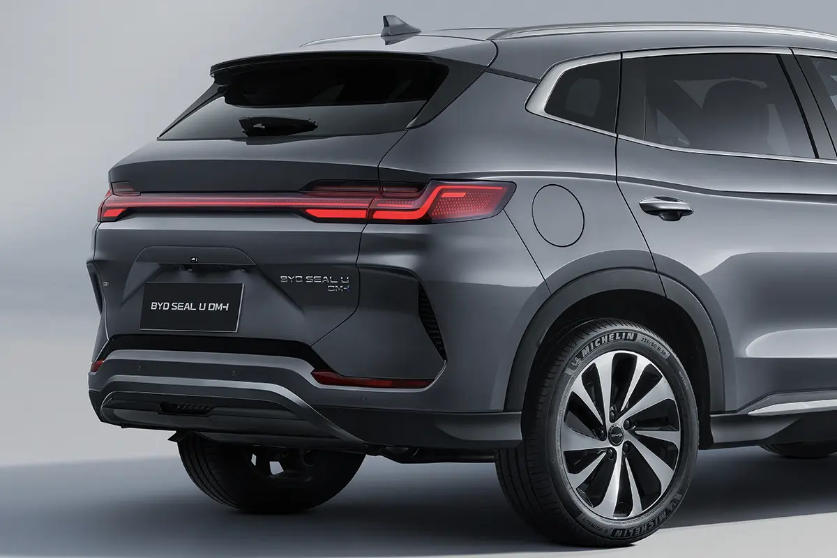 Doch der BYD SEAL U DM-i zieht nicht nur von vorne die Blicke auf sich. Auch von hinten beeindruckt das Hybrid-SUV mit eleganten Punktmatrix-Heckleuchten, die sich über die gesamte Heckbreite erstrecken.